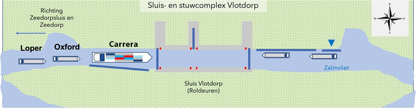 De kolk is bijna beneden. De twee schepen voor de Loper hebben zich al gemeld.