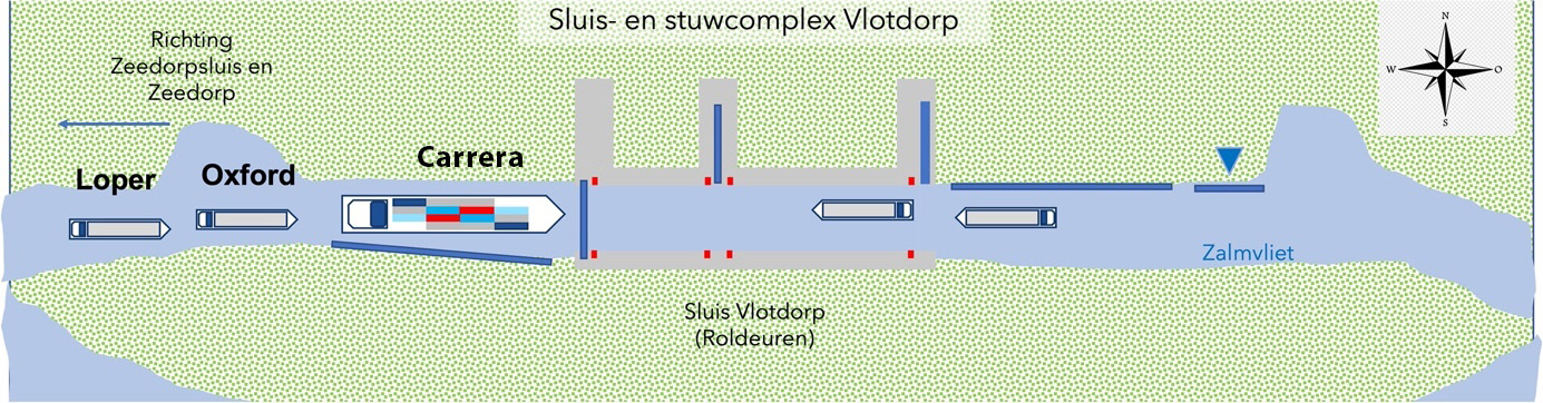 De Oxford heeft de 1e lengte stuurboord toegewezen gekregen.