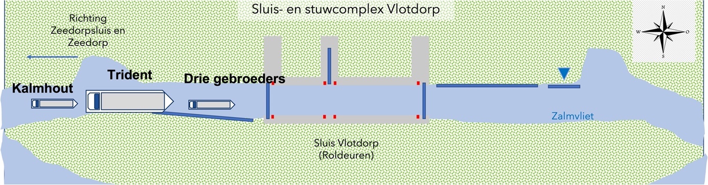 Oefening 28 Sluis kolkindeling Gegevens: Je bent onderweg naar beneden De twee kleinere schepen passen niet naast de Trident De vaarweg is breed genoeg om te kunnen passeren De Drie Gebroeders mag als eerste invaren en heeft 1e lengte stuurboord gekregen Je hebt aan de Trident gezegd dat hij als 2e in mag varen, 2e lengte stuurboord achter de Drie Gebroeders. Dan roept de Kalmhout op en meldt zich voor een schutting (denk aan de kolindeling). Beluister oproep https://www.professional-webdesign.nl/wp-content/uploads/2024/12/2801-Kalmhout.mp3 Check antwoord Kalmhout, vijfhonderd meter west van de sluis achter de Trident Dit is sluis Vlotdorp U mag de Trident voorbijlopen, u bent nummer twee in de kolk, 1e lengte bakboord Over Beluister https://www.professional-webdesign.nl/wp-content/uploads/2024/12/2802-Kalmhout.mp3 Check antwoord Trident, dit is sluis Vlotdorp Over Beluister https://www.professional-webdesign.nl/wp-content/uploads/2024/12/2803-Trident.mp3 Check antwoord Trident Dit is sluis Vlotdorp De Kalmhout vaart als tweede in U bent nummer 3 in de kolk, 2e lengte stuurboord achter de Drie Gebroeders Over Beluister https://www.professional-webdesign.nl/wp-content/uploads/2024/12/2804-trident.mp3 Volgende oefening
